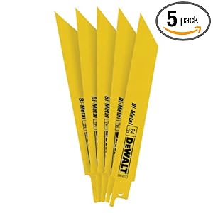 DEWALT DW4813 6-Inch 24-TPI Straight Back Bi-Metal Reciprocating Saw Blade, Metal Trim Cuts (5-Pack)